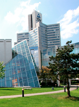 - Hinter dem TÜV-Hochhaus sehen Sie den Rundbau mit dem GFU-Schulungszentrum. Nehmen Sie Eingang A.